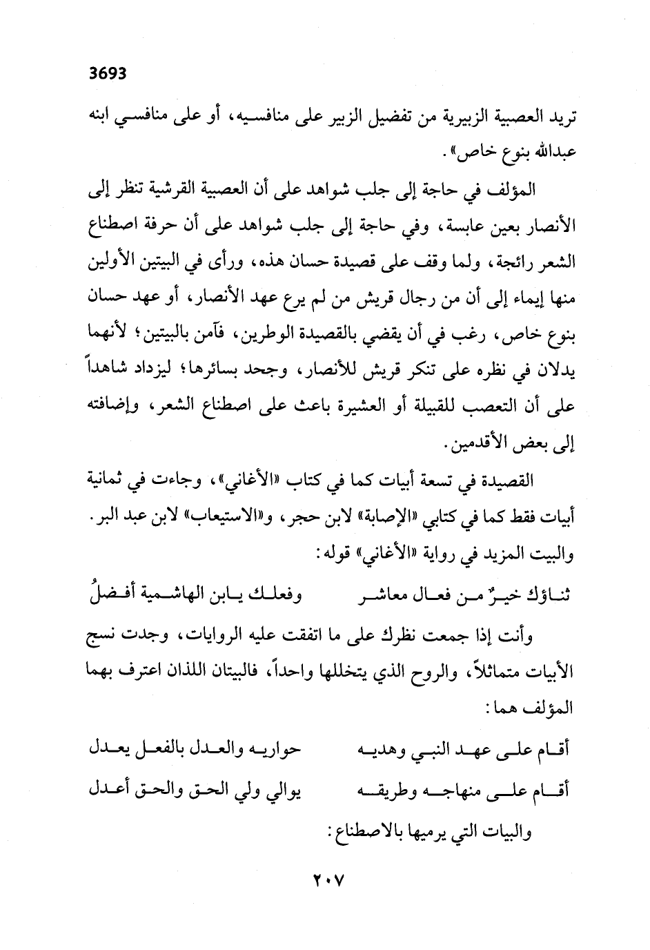 المؤلف في حاجة إلى جلب شواهد على أن العصبية القرشية تنظر إلى الأنصار بعين عابسة، وفي حاجة إلى جلب شواهد على أن حرفة اصطناع الشعر رائجة، ولما وقف على قصيدة حسان هذه، ورأى في البيتين الأولين منها إيماء إلى أن من رجال قريش من لم يرع عهد الأنصار، أو عهد حسان بنوع خاص، رغب في أن يقضي بالقصيدة الوطرين، فآمن بالبيتين؛ لأنهما يدلان في نظره على تنكر قريش للأنصار، وجحد بسائرها، ليزداد شاهداً على أن التعصب للقبيلة أو العشيرة باعث على اصطناع الشعر، وإضافته إلى بعض الأقدمين.