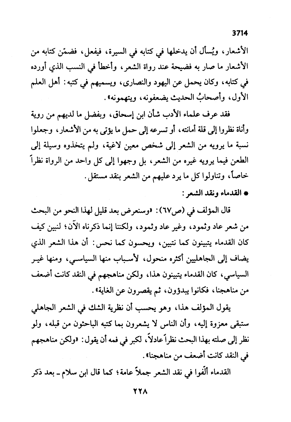 القدماء ألّفوا في نقد الشعر جملاً عامة؛ كما تال ابن سلام -بعد ذكر