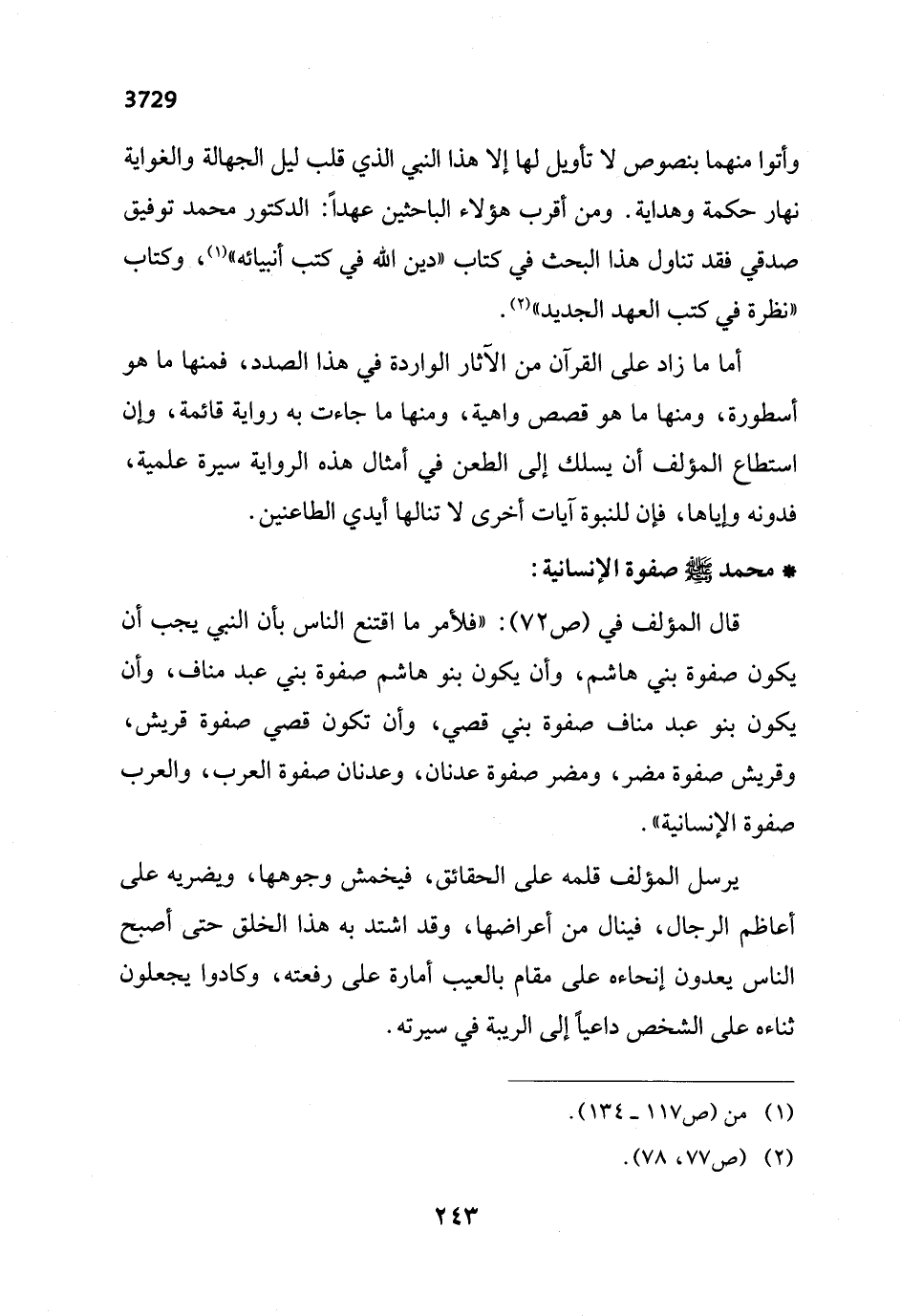 وأتوا منهما بنصوص لا تأويل لها إلا هذا النبي الذي قلب ليل الجهالة والغواية نهار حكمة وهداية. ومن أقرب هؤلاء الباحثين عهداً: الدكتور محمد توفيق صدقي فقد تناول هذا البحث في كتاب "دين الله في كتب أنبيائه" (¬1)، وكتاب "نظرة في كتب العهد الجديد" (¬2).