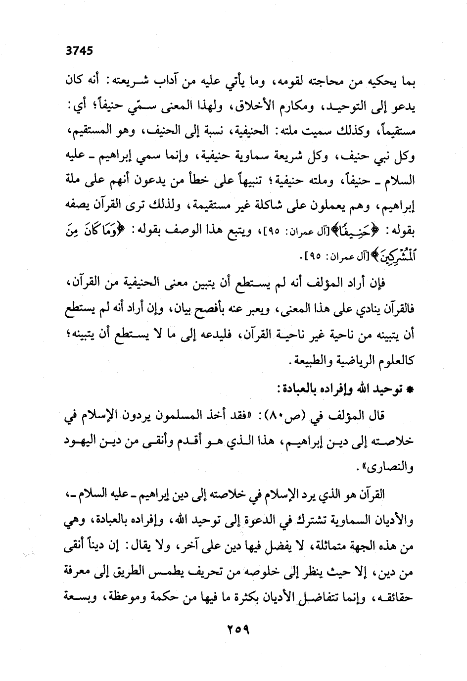 فإن أراد المؤلف أنه لم يستطع أن يتبين معنى الحنيفية من القرآن، فالقرآن ينادي على هذا المعنى، ويعبر عنه بأفصح بيان، وإن أراد أنه لم يستطع أن يتبينه من ناحية غير ناحية القرآن، فليدعه إلى ما لا يستطع أن يتبينه؛ كالعلوم الرياضية والطبيعة.