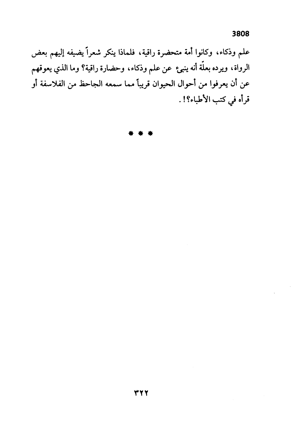 علم وذكاء، وكانوا أمة متحضرة راقية، فلماذا ينكر شعراً يضيفه إليهم بعض الرواة، ويرده بعلّة أنه ينبئ عن علم وذكاء، وحضارة راقية؟ وما الذي يعوقهم عن أن يعرفوا من أحوال الحيوان قريباً مما سمعه الجاحظ من الفلاسفة أو قرأه في كتب الأطباء؟!.