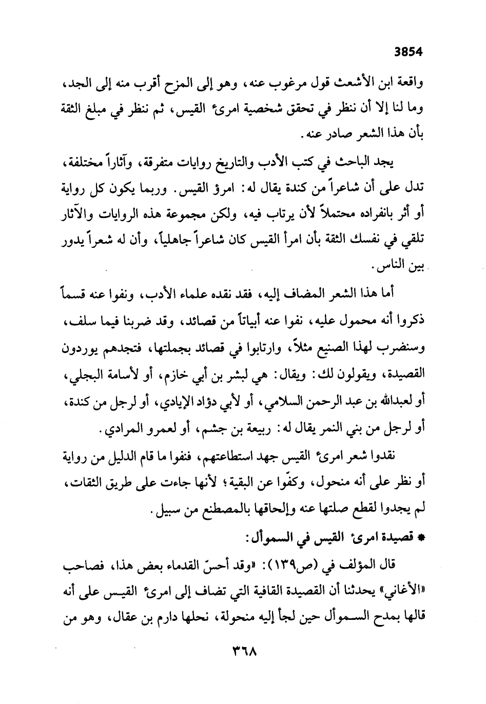 واقعة ابن الأشعث قول مرغوب عنه، وهو إلى المزح أقرب منه إلى الجد، وما لنا إلا أن ننظر في تحقق شخصية امرئ القيس، ثم ننظر في مبلغ الثقة بأن هذا الشعر صادر عنه.