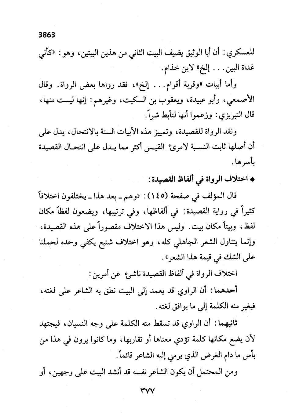 اختلاف الرواة في ألفاظ القصيدة ناشئ عن أمرين: