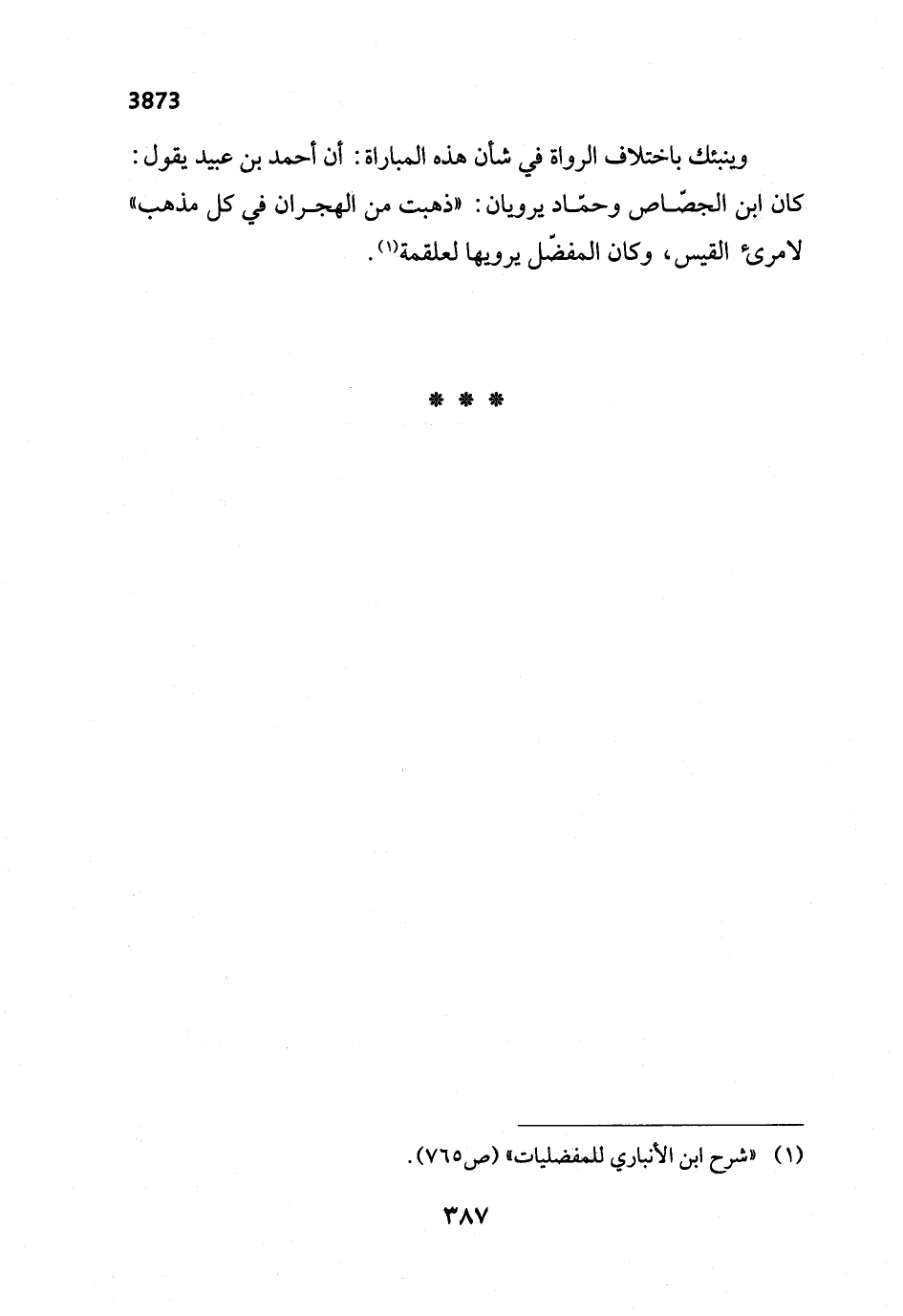 (¬1) "شرح ابن الأنباري للمفضليات" (ص 765).
