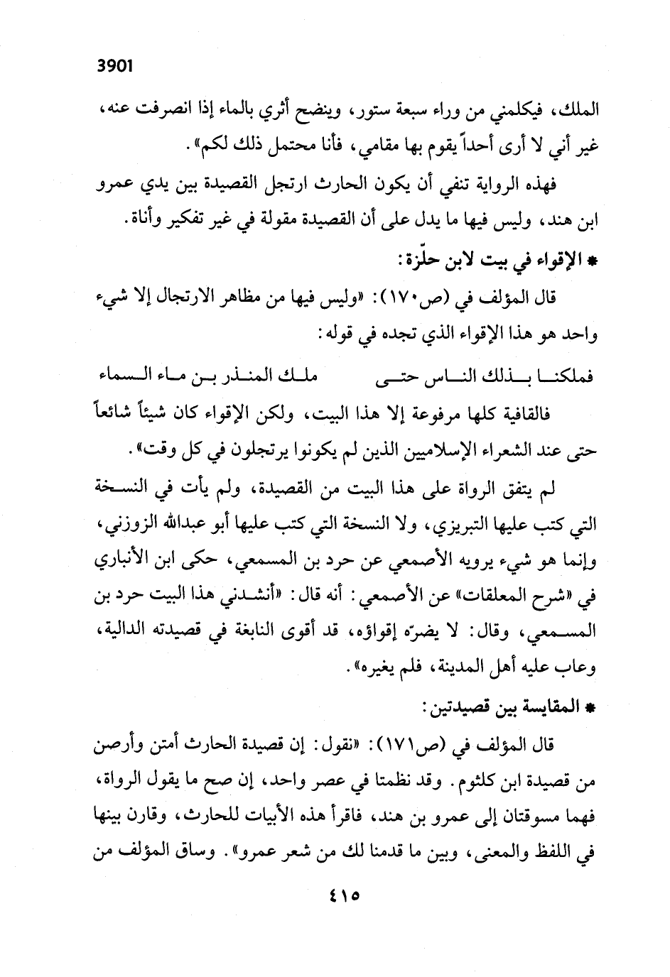 قال المؤلف في (ص 171): "نقول: إن قصيدة الحارث أمتن وأرصن من قصيدة ابن كلثوم. وقد نظمتا في عصر واحد، إن صح ما يقول الرواة، فهما مسوقتان إلى عمرو بن هند، فاقرأ هذه الأبيات للحارث، وقارن بينها في اللفظ والمعنى، وبين ما قدمنا لك من شعر عمرو". وساق المؤلف من