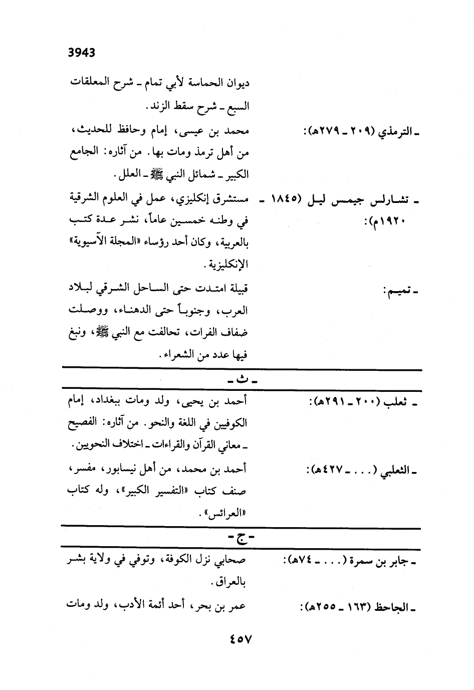 - الثعلبي (... - 427 هـ): أحمد بن محمد، من أهل نيسابور، مفسر، صنف كتاب "التفسير الكبير"، وله كتاب "العرائس".
