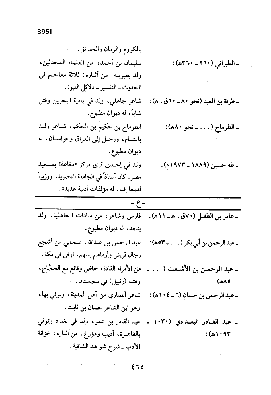 - الطرماح (... - نحو 80 هـ): الطرماح بن حكيم بن الحكم، شاعر ولد بالشام، ورحل إلى العراق وخراسان. له ديوان مطبوع.
