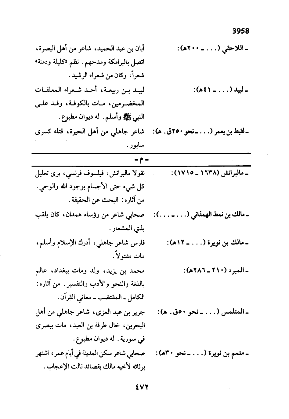 - لبيد (... - 41 هـ): لبيد بن ربيعة، أحد شعراء المعلقات المخضرمين، مات بالكوفة، وفد على النبي - صلى الله عليه وسلم - وأسلم. له ديوان مطبوع.