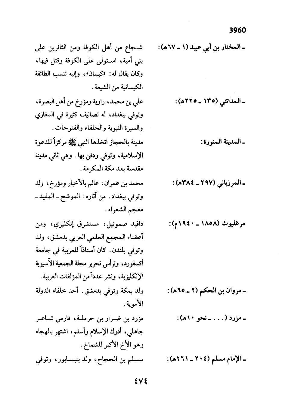 - المرزباني (297 - 384 هـ): محمّد بن عمران، عالم بالأخبار ومؤرخ، ولد وتوفي ببغداد. من آثاره: الموشح - المفيد - معجم الشعراء.