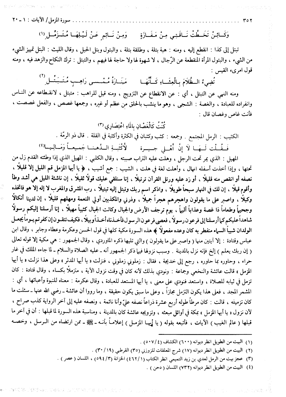 ( عَدَداً يأَيُّهَا الْمُزَّمّلُ قُمِ الَّيْلَ إِلاَّ قَلِيلاً نّصْفَهُ أَوِ انقُصْ مِنْهُ قَلِيلاً أَوْ زِدْ عَلَيْهِ وَرَتّلِ الْقُرْءانَ تَرْتِيلاً إِنَّا سَنُلْقِى عَلَيْكَ قَوْلاً ثَقِيلاً إِنَّ نَاشِئَةَ الَّيْلِ هِىَ أَشَدُّ وَطْأً وَأَقْوَمُ قِيلاً إِنَّ لَكَ فِى النَّهَارِ سَبْحَاً طَوِيلاً وَاذْكُرِ اسْمَ رَبّكَ وَتَبَتَّلْ إِلَيْهِ تَبْتِيلاً رَّبُّ الْمَشْرِقِ وَالْمَغْرِبِ لاَ إِلَاهَ إِلاَّ هُوَ فَاتَّخِذْهُ وَكِيلاً وَاصْبِرْ عَلَى مَا يَقُولُونَ وَاهْجُرْهُمْ هَجْراً جَمِيلاً وَذَرْنِى وَالْمُكَذّبِينَ أُوْلِى النَّعْمَةِ وَمَهّلْهُمْ قَلِيلاً إِنَّ لَدَيْنَا أَنكَالاً وَجَحِيماً وَطَعَاماً ذَا غُصَّةٍ وَعَذَاباً أَلِيماً يَوْمَ تَرْجُفُ الاْرْضُ وَالْجِبَالُ وَكَانَتِ الْجِبَالُ كَثِيباً مَّهِيلاً إِنَّا أَرْسَلْنَا إِلَيْكُمْ رَسُولاً شَاهِداً عَلَيْكُمْ كَمَا أَرْسَلْنَا إِلَى فِرْعَوْنَ رَسُولاً فَعَصَى فِرْعَوْنُ الرَّسُولَ فَأَخَذْنَاهُ أَخْذاً وَبِيلاً ).