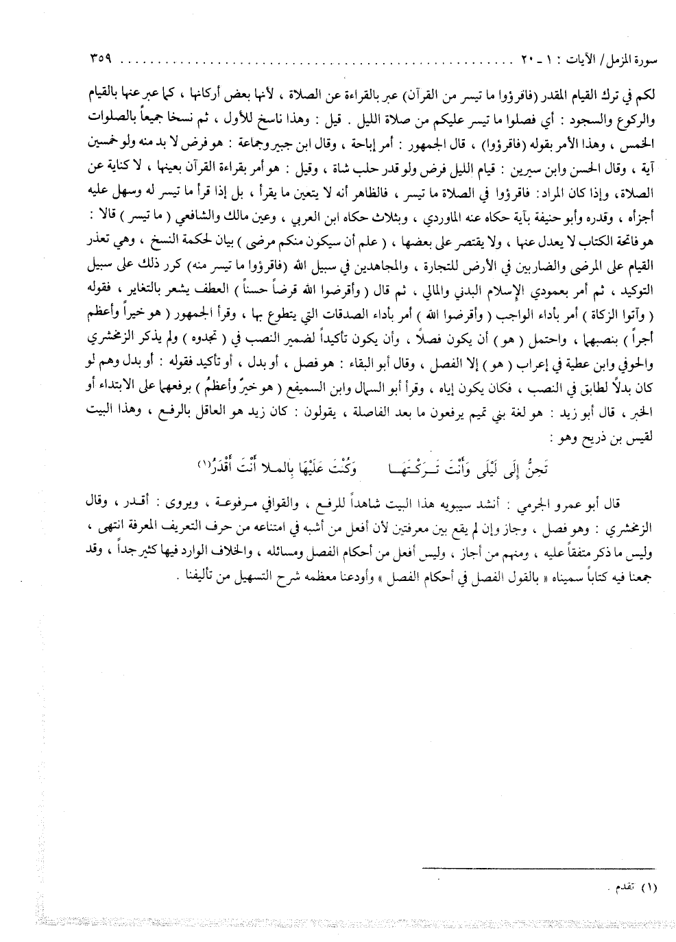 قال أبو عمرو الجرمي : أنشد سيبويه هذا البيت شاهداً للرفع والقوافي مرفوعة . ويروى : أقدر . وقال الزمخشري : وهو فصل وجاز وإن لم يقع بين معرفتين ، لأن أفعل من أشبه في امتناعه من حرف التعريف المعرفة . انتهى . وليس ما ذكر متفقاً عليه . ومنهم من أجازه ، وليس أفعل من أحكام الفصل ومسائله ، والخلاف الوارد فيها كثير جداً ، وقد جمعنا فيه كتاباً سميناه بالقول الفصل في أحكام الفصل ، وأودعنا معظمه شرح التسهيل من تأليفنا .