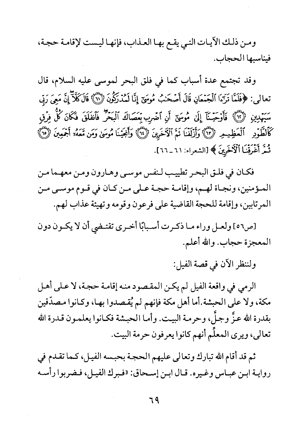 [ص ٥٦] ولعل وراء ما ذكرت أسبابًا أخرى تقتضي أن لا يكون دون المعجزة حجاب. والله أعلم.