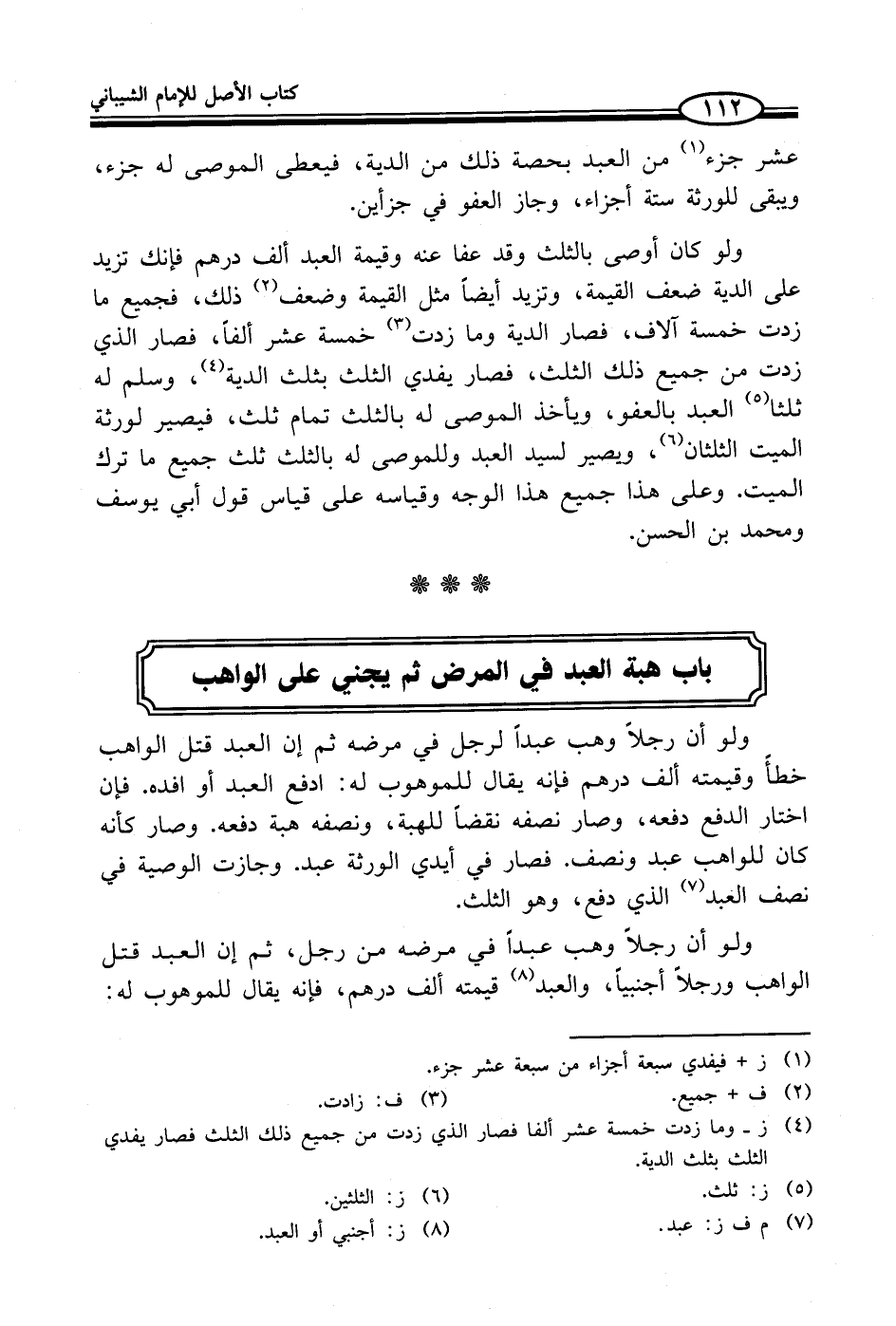 (¬4) ز - وما زدت خمسة عشر ألفا فصار الذي زدت من جميع ذلك الثلث فصار يفدي الثلث بثلث الدية.