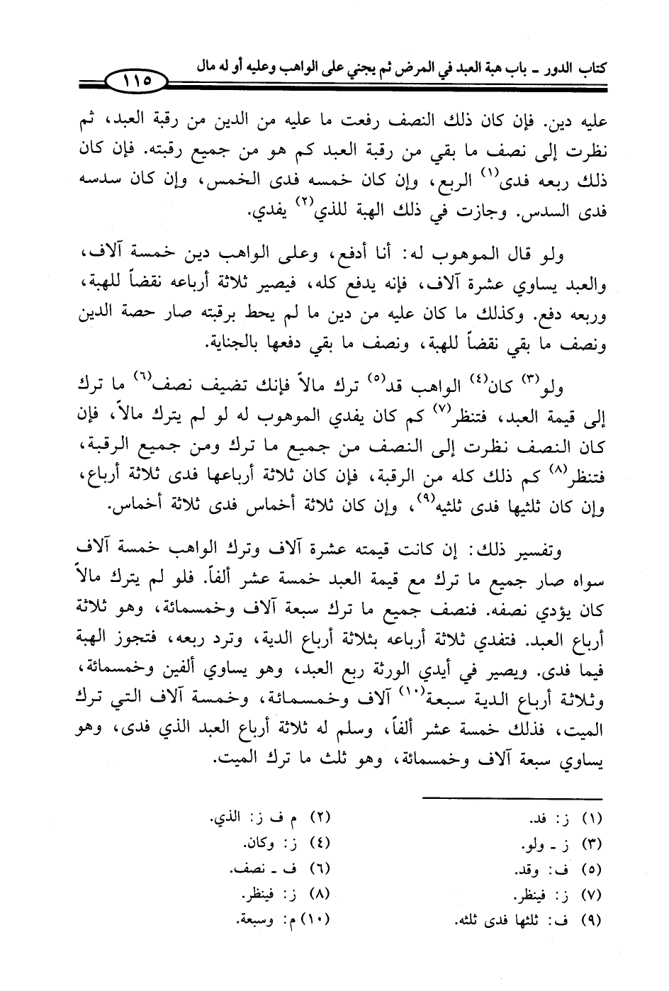 عليه دين. فإن كان ذلك النصف رفعت ما عليه من الدين من رقبة العبد، ثم نظرت إلى نصف ما بقي من رقبة العبد كم هو من جميع رقبته. فإن كان ذلك ربعه فدى (¬1) الربع، وإن كان خمسه فدى الخمس، وإن كان سدسه فدى السدس. وجازت في ذلك الهبة للذي (¬2) يفدي.