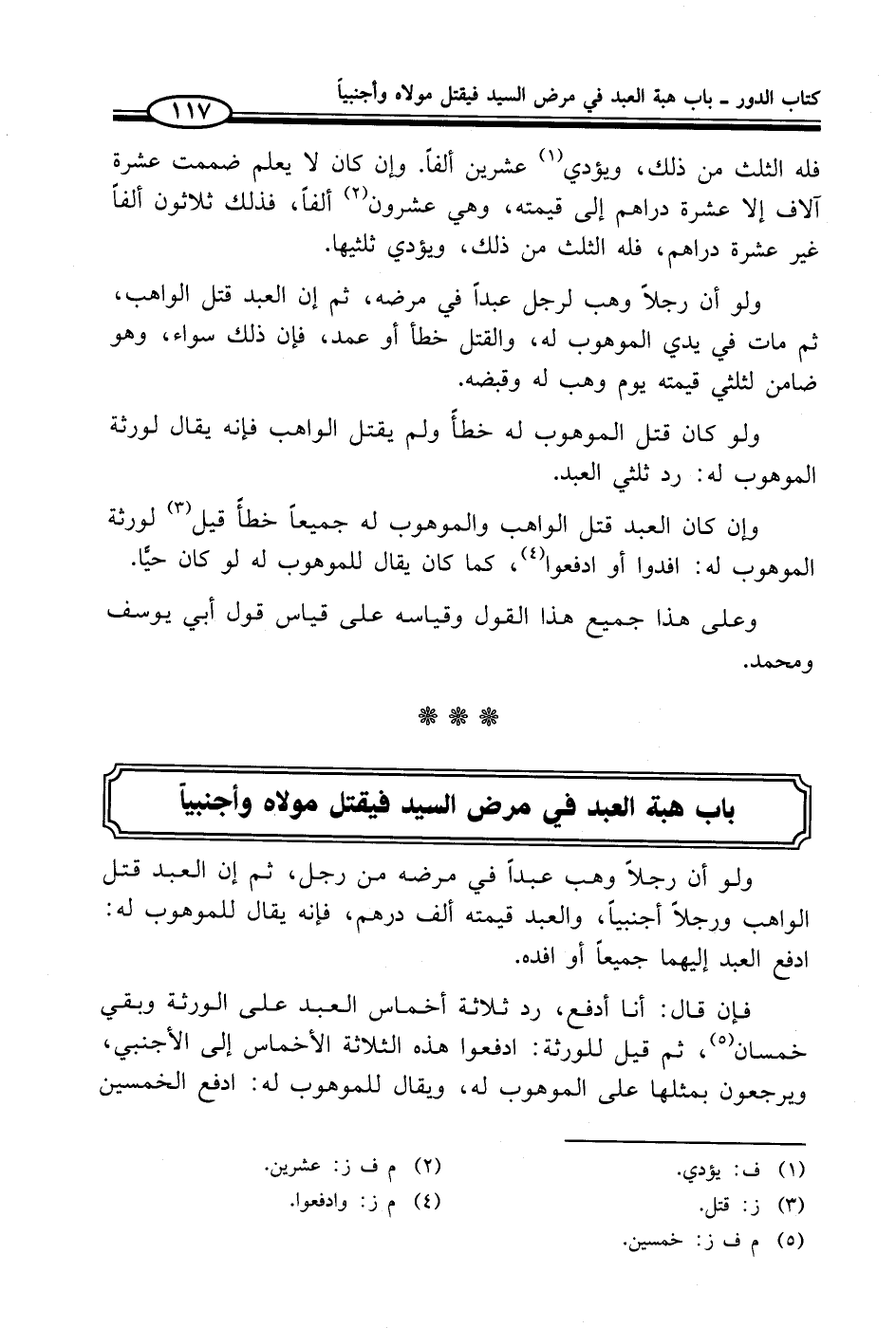باب هبة العبد في مرض السيد فيقتل مولاه وأجنبياً