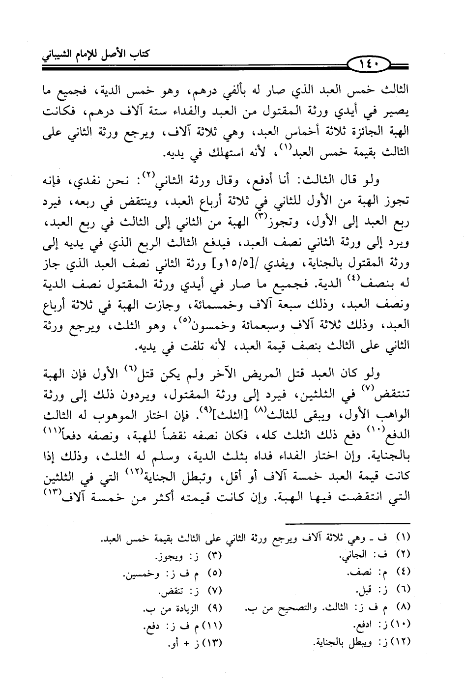 (¬1) ف - وهي ثلاثة آلاف ويرجع ورثة الثاني على الثالث بقيمة خمس العبد.