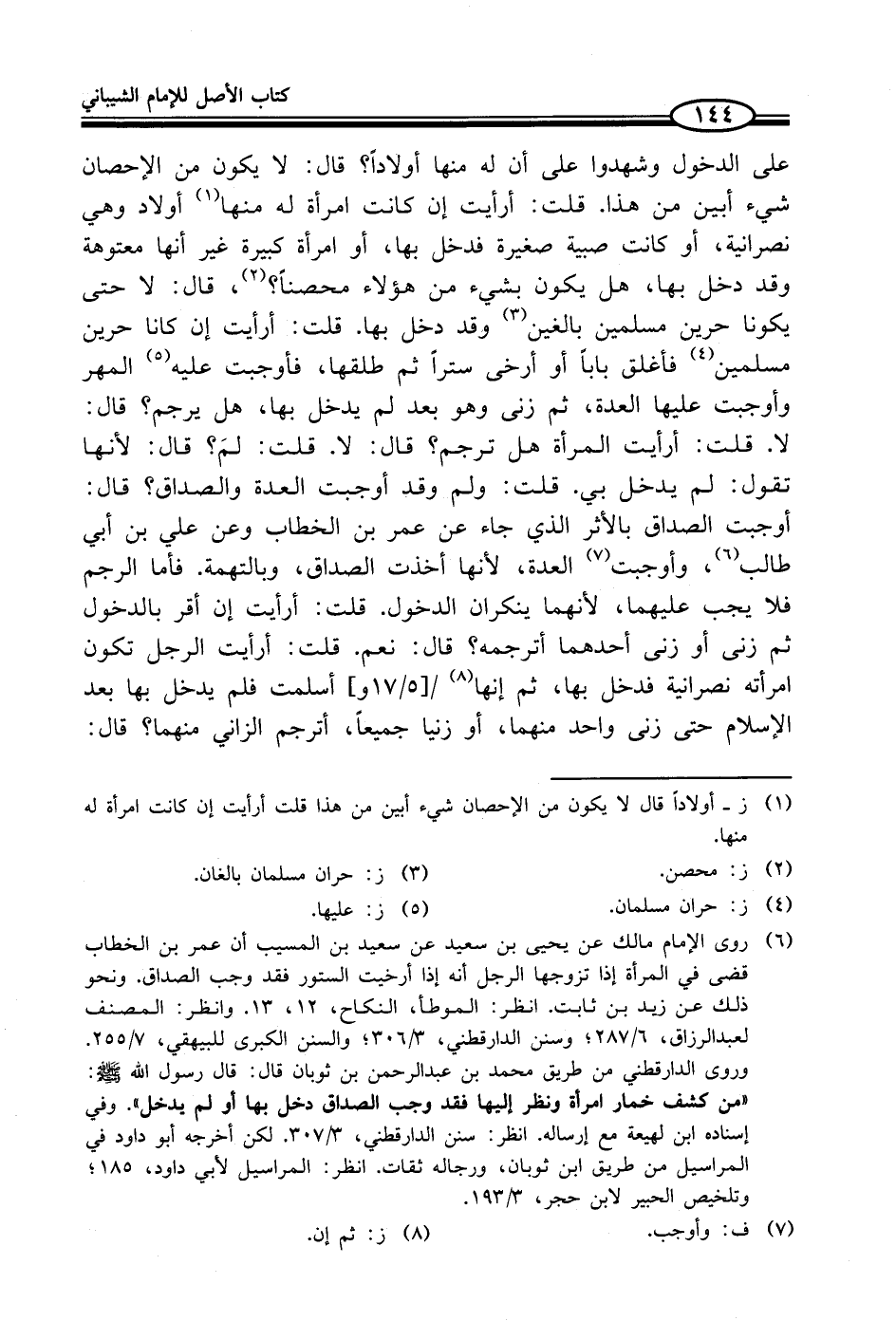 (¬1) ز - أولاداً قال لا يكون من الإحصان شيء أبين من هذا قلت أرأيت إن كانت امرأة له منها.