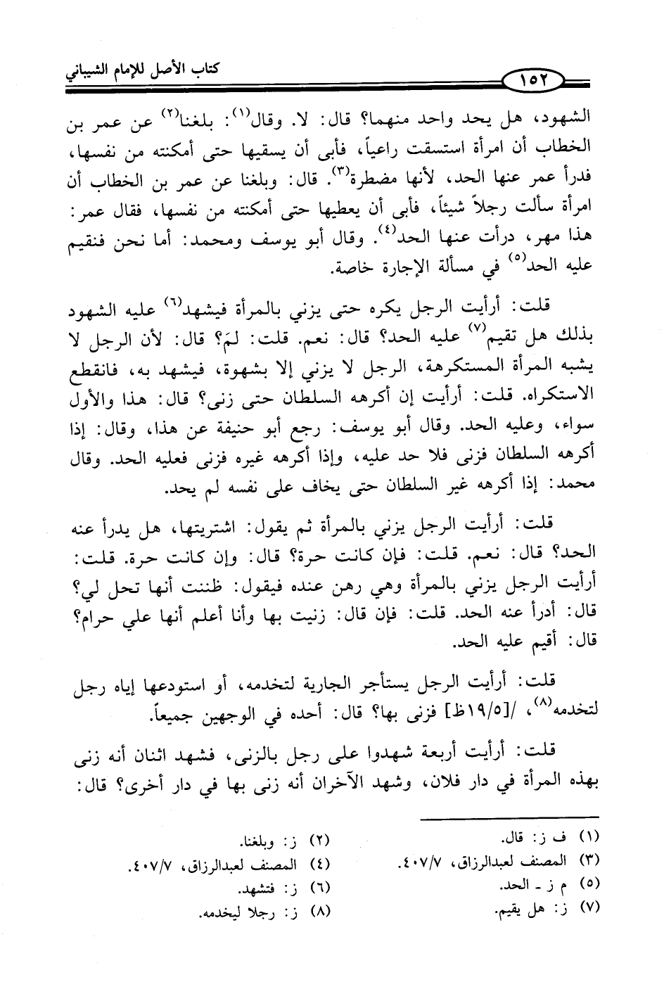 الشهود، هل يحد واحد منهما؟ قال: لا. وقال (¬1): بلغنا (¬2) عن عمر بن الخطاب أن امرأة استسقت راعياً، فأبى أن يسقيها حتى أمكنته من نفسها، فدرأ عمر عنها الحد، لأنها مضطرة (¬3). قال: وبلغنا عن عمر بن الخطاب أن امرأة سألت رجلاً شيئاً، فأبى أن يعطيها حتى أمكنته من نفسها، فقال عمر: هذا مهر، درأت عنها الحد (¬4). وقال أبو يوسف ومحمد: أما نحن فنقيم عليه الحد (¬5) في مسألة الإجارة خاصة.