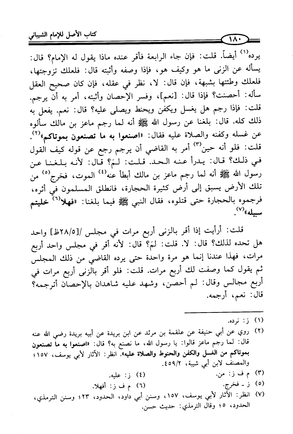 (¬7) انظر: الآثار لأبي يوسف، 157، وسنن أبي داود، الحدود، 23؛ وسنن الترمذي، الحدود، 5، وقال الترمذي: حديث حسن.