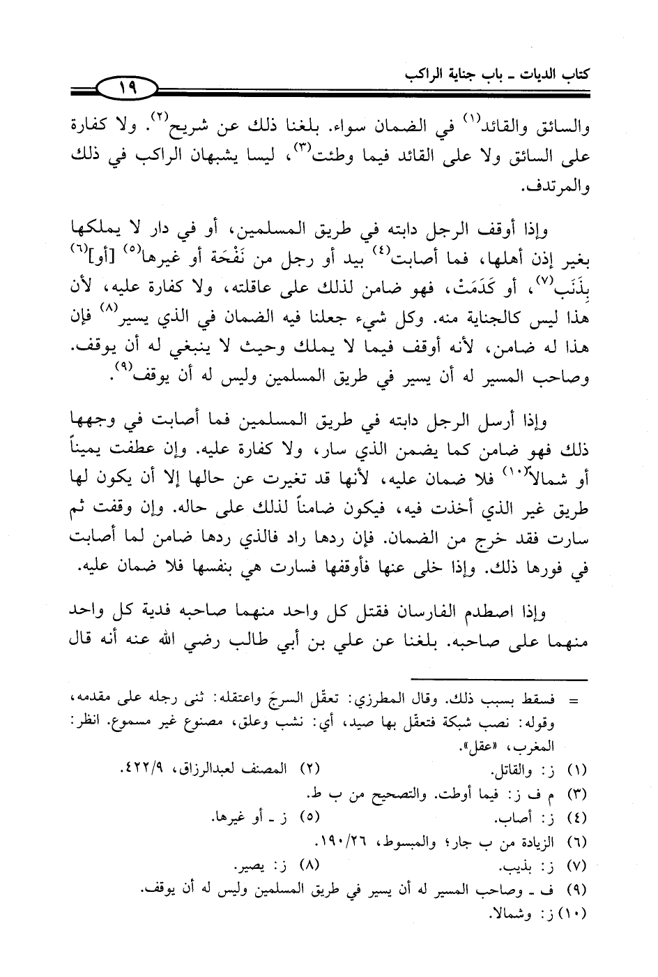 (¬9) ف - وصاحب المسير له أن يسير في طريق المسلمين وليس له أن يوقف.