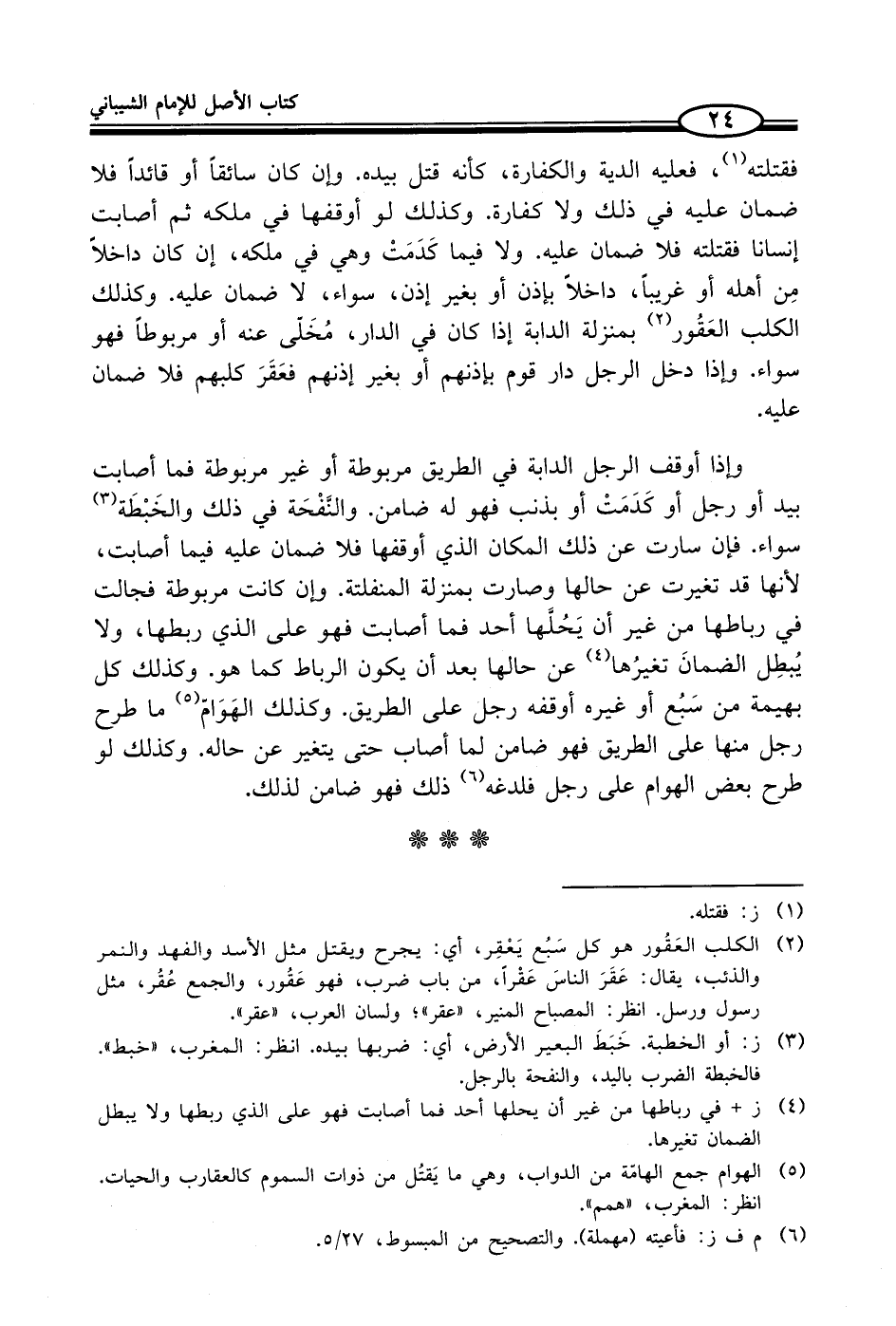 (¬4) ز + في رباطها من غير أن يحلها أحد فما أصابت فهو على الذي ربطها ولا يبطل الضمان تغيرها.