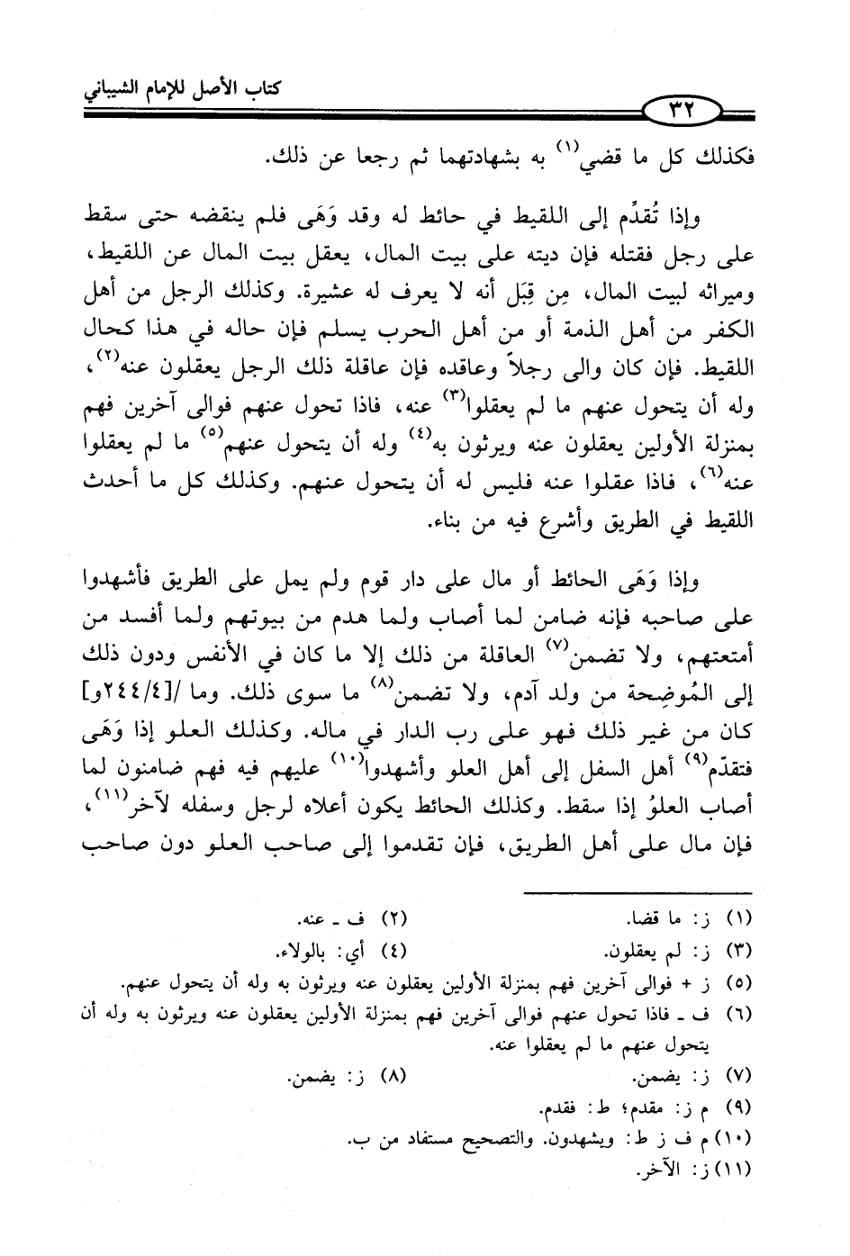 وإذا تُقدِّم إلى اللقيط في حائط له وقد وَهَى فلم ينقضه حتى سقط على رجل فقتله فإن ديته على بيت المال، يعقل بيت المال عن اللقيط، وميراثه لبيت المال، مِن قِبَل أنه لا يعرف له عشيرة. وكذلك الرجل من أهل الكفر من أهل الذمة أو من أهل الحرب يسلم فإن حاله في هذا كحال اللقيط. فإن كان والى رجلاً وعاقده فإن عاقلة ذلك الرجل يعقلون عنه (¬2)، وله أن يتحول عنهم ما لم يعقلوا (¬3) عنه، فاذا تحول عنهم فوالى آخرين فهم بمنزلة الأولين يعقلون عنه ويرثون به (¬4) وله أن يتحول عنهم (¬5) ما لم يعقلوا عنه (¬6)، فاذا عقلوا عنه فليس له أن يتحول عنهم. وكذلك كل ما أحدث اللقيط في الطريق وأشرع فيه من بناء.