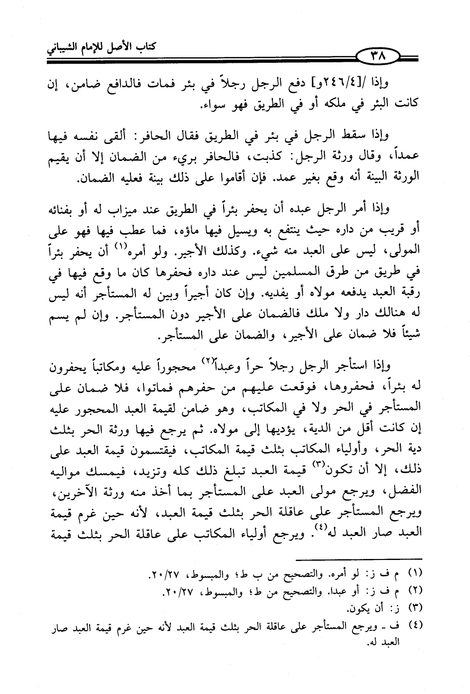 (¬4) ف - ويرجع المستأجر على عاقلة الحر بثلث قيمة العبد لأنه حين غرم قيمة العبد صار العبد له.