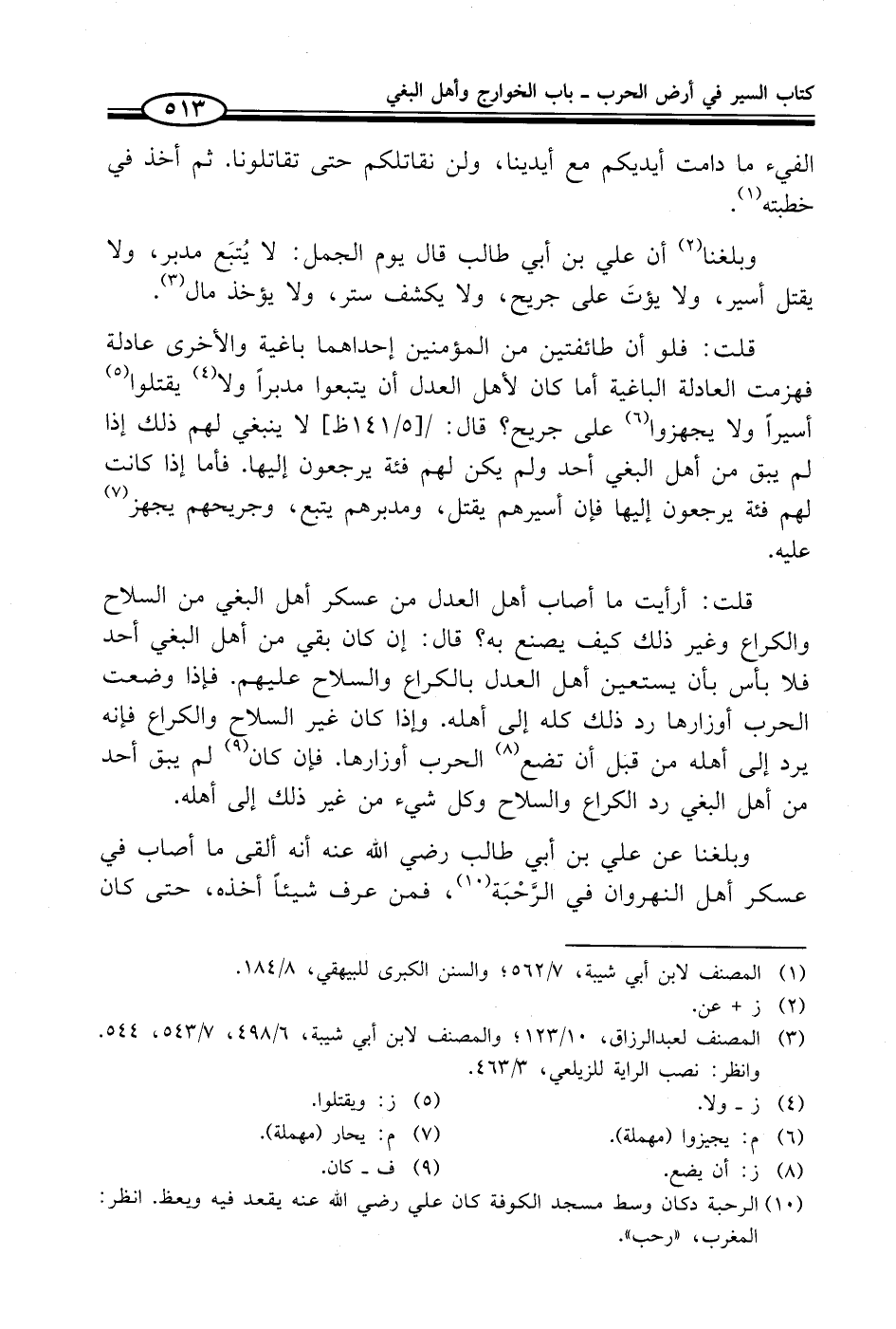 وبلغنا عن علي بن أبي طالب - رضي الله عنه - أنه ألقى ما أصاب في عسكر أهل النهروان في الرَّحْبَة (¬10)، فمن عرف شيئاً أخذه، حتى كان