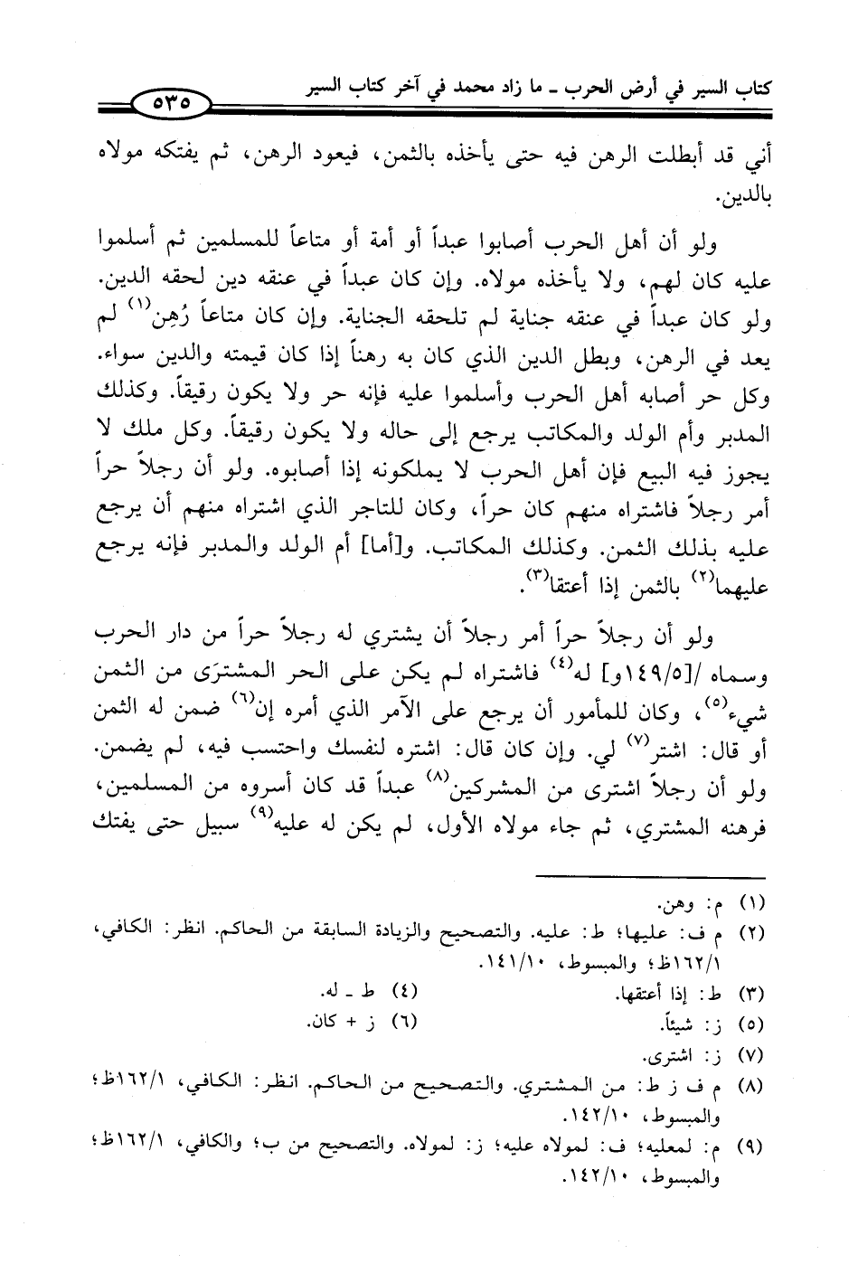 (¬9) م: لمعليه؛ ف: لمولاه عليه؛ ز: لمولاه. والتصحيح من ب؛ والكافي، 1/ 162 ظ؛ والمبسوط، 10/ 142.