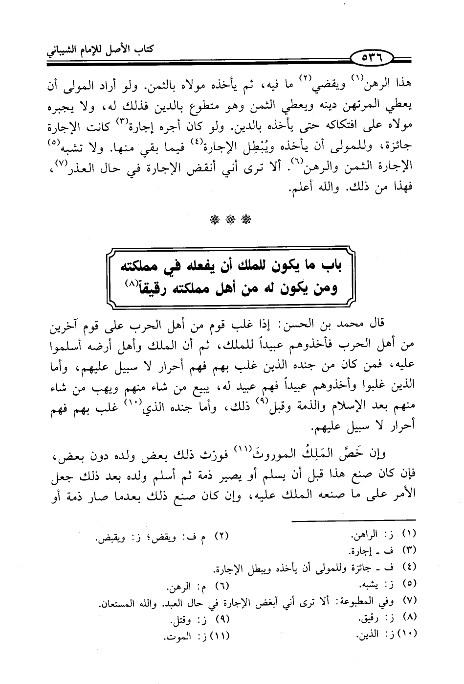 باب ما يكون للملك أن يفعله في مملكته ومن يكون له من أهل مملكته رقيقاً (¬8)