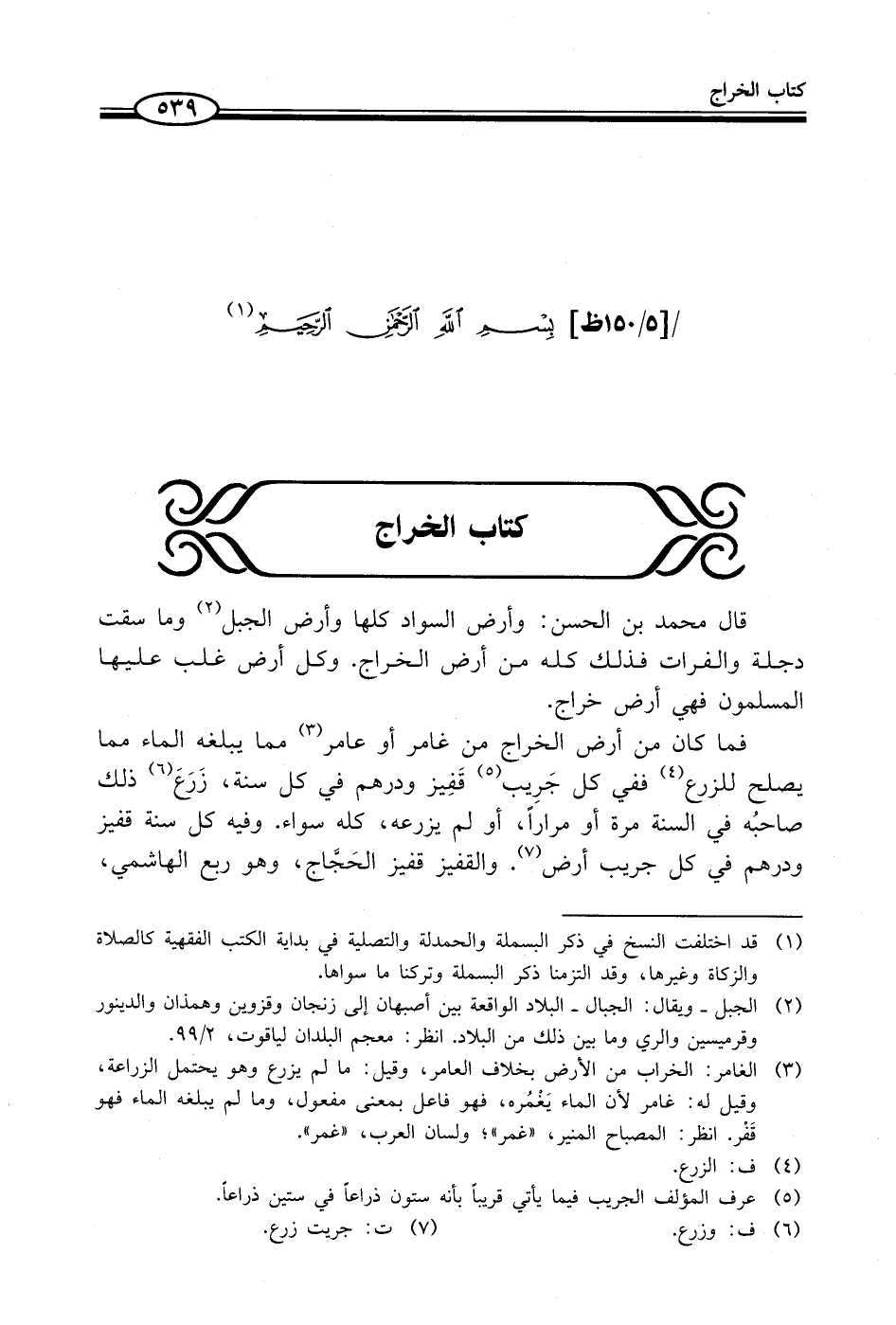 (¬5) عرف المؤلف الجريب فيما يأتي قريباً بأنه ستون ذراعاً في ستين ذراعاً.