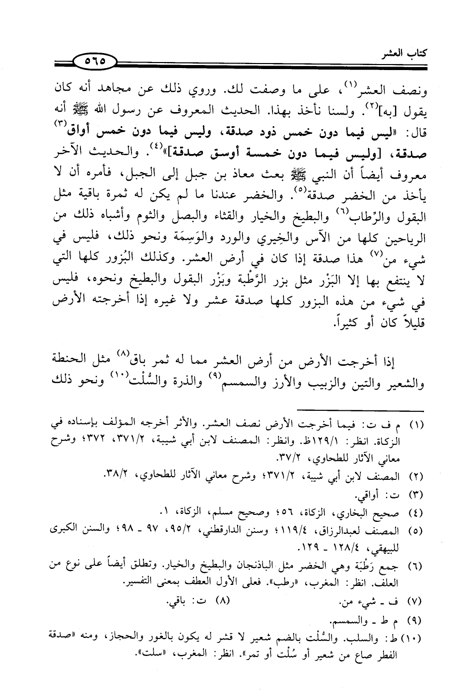 (¬1) م ف ت: فيما أخرجت الأرض نصف العشر. والأثر أخرجه المؤلف بإسناده في الزكاة. انظر: 1/ 129 ظ. وانظر: المصنف لابن أبي شيبة، 2/ 371، 372؛ وشرح معاني الآثار للطحاوي، 2/ 37.