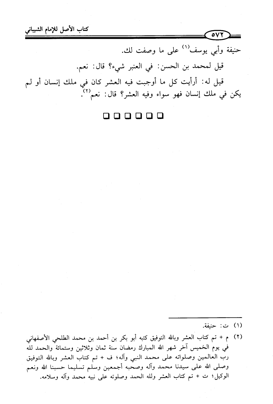 الوكيل؛ ت + تم كتاب العشر ولله الحمد وصلوته على نبيه محمد وآله وسلامه.