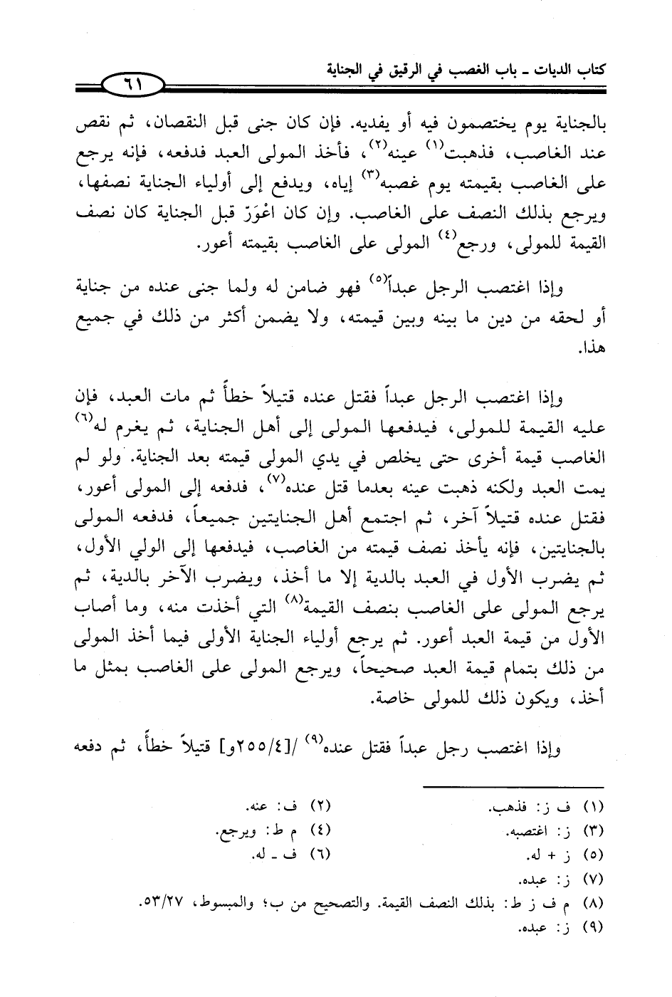 (¬8) م ف ز ط: بذلك النصف القيمة. والتصحيح من ب؛ والمبسوط، 27/ 53.