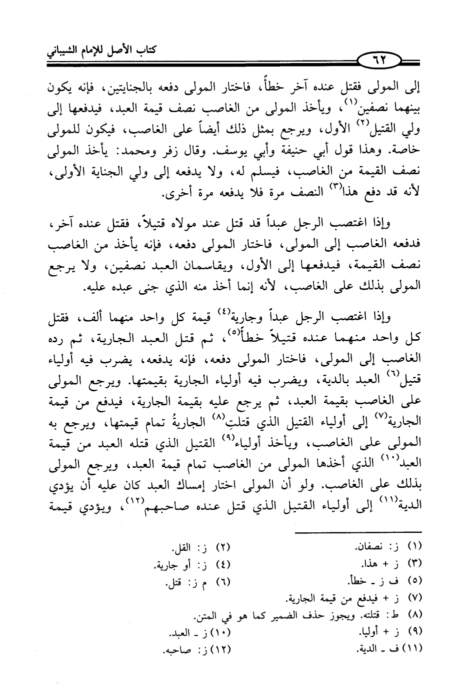 وإذا اغتصب الرجل عبداً وجارية (¬4) قيمة كل واحد منهما ألف، فقتل كل واحد منهما عنده قتيلاً خطأً (¬5)، ثم قتل العبد الجارية، ثم رده الغاصب إلى المولى، فاختار المولى دفعه، فإنه يدفعه، يضرب فيه أولياء قتيل (¬6) العبد بالدية، ويضرب فيه أولياء الجارية بقيمتها. ويرجع المولى على الغاصب بقيمة العبد، ثم يرجع عليه بقيمة الجارية، فيدفع من قيمة الجارية (¬7) إلى أولياء القتيل الذي قتلتِ (¬8) الجاريةُ تمام قيمتها، ويرجع به الموبى على الغاصب، ويأخذ أولياء (¬9) القتيل الذي قتله العبد من قيمة العبد (¬10) الذي أخذها المولى من الغاصب تمام قيمة العبد، ويرجع المولى بذلك على الغاصب. ولو أن المولى اختار إمساك العبد كان عليه أن يؤدي الدية (¬11) إلى أولياء القتيل الذي قتل عنده صاحبهم (¬12)، ويؤدي قيمة