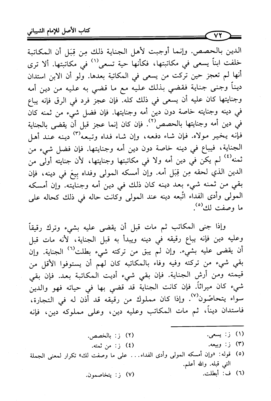 (¬5) قوله: "وإن أمسكه المولى وأدى الفداء. . . على ما وصفت لك" تكرار لمعنى الجملة التي قبله. والله أعلم.
