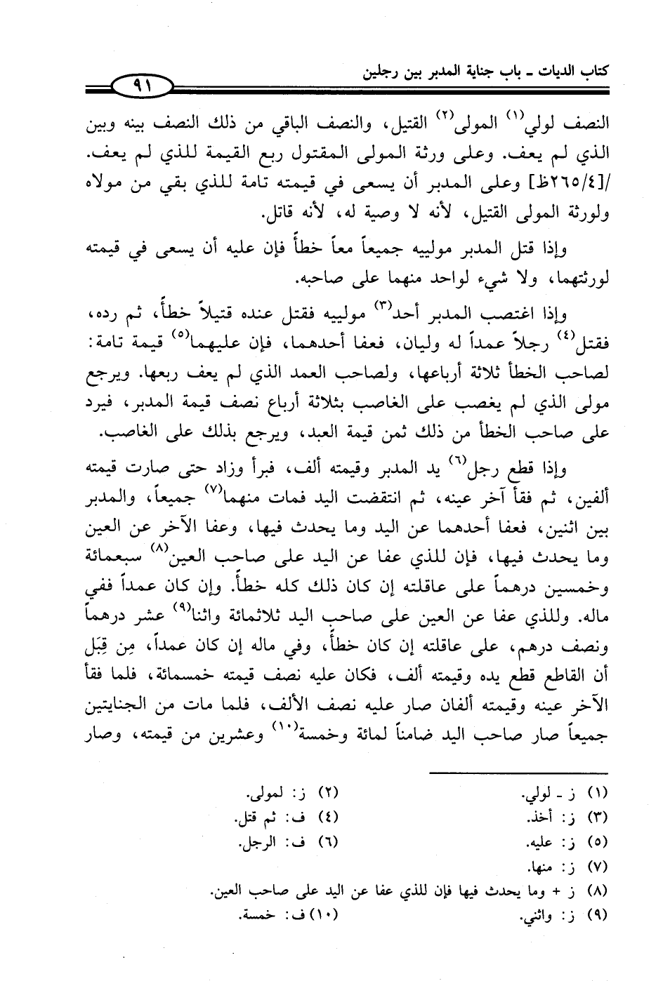 (¬8) ز - وما يحدث فيها فإن للذي عفا عن اليد على صاحب العين.