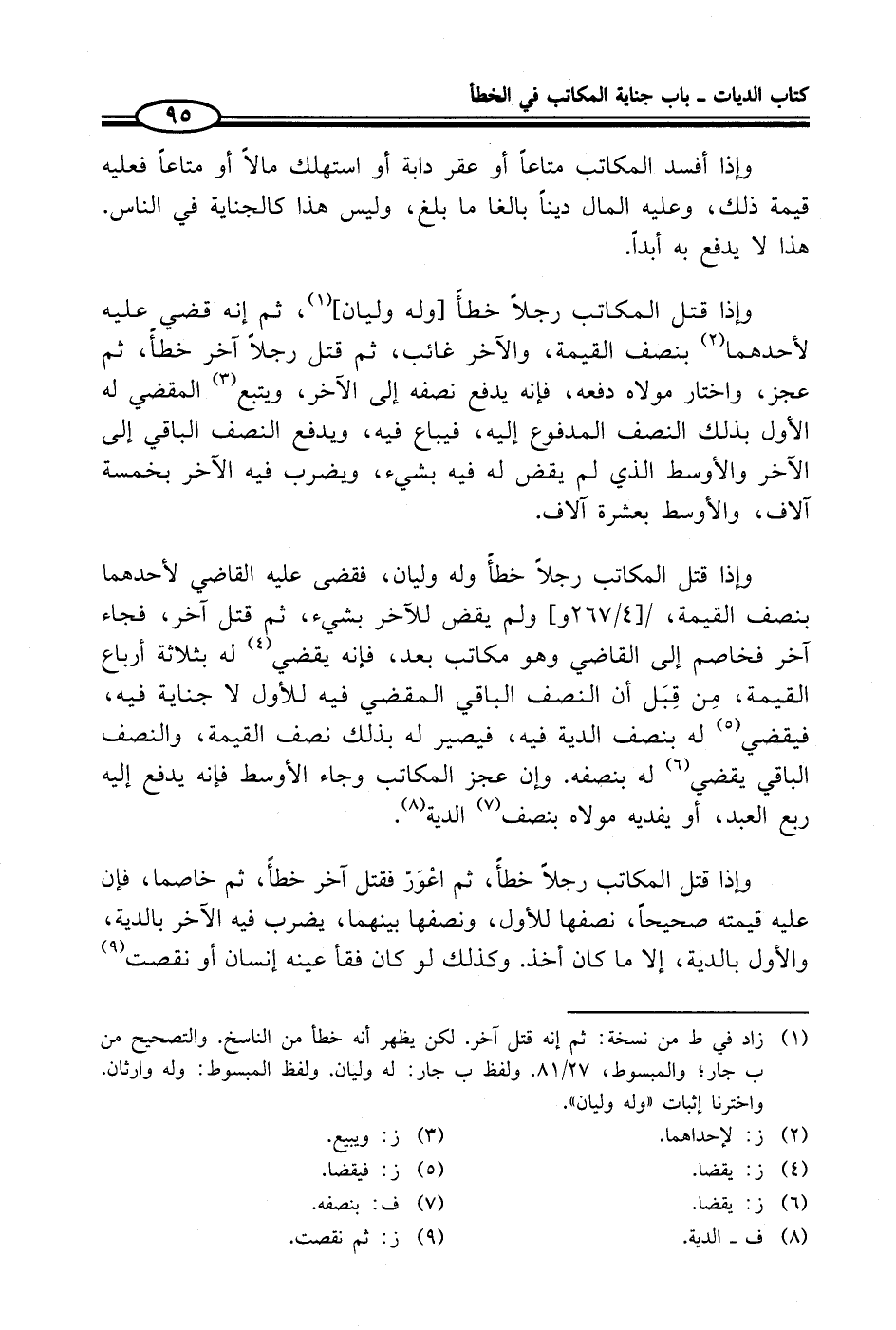 (¬1) زاد في ط من نسخة: ثم إنه قتل آخر. لكن يظهر أنه خطأ من الناسخ. والتصحيح من ب جار؛ والمبسوط، 27/ 81. ولفظ ب جار: له وليان. ولفظ المبسوط: وله وارثان. واخترنا إثبات "وله وليان".