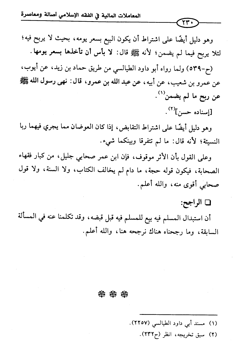 (ح-٥٣٩) ولما رواه أبو داود الطيالسي من طريق حماد بن زيد، عن أيوب، عن عمرو بن شعيب، عن أبيه، عن عبد الله بن عمرو، قال: نهى رسول الله عن ربح ما لم يضمن (¬١).