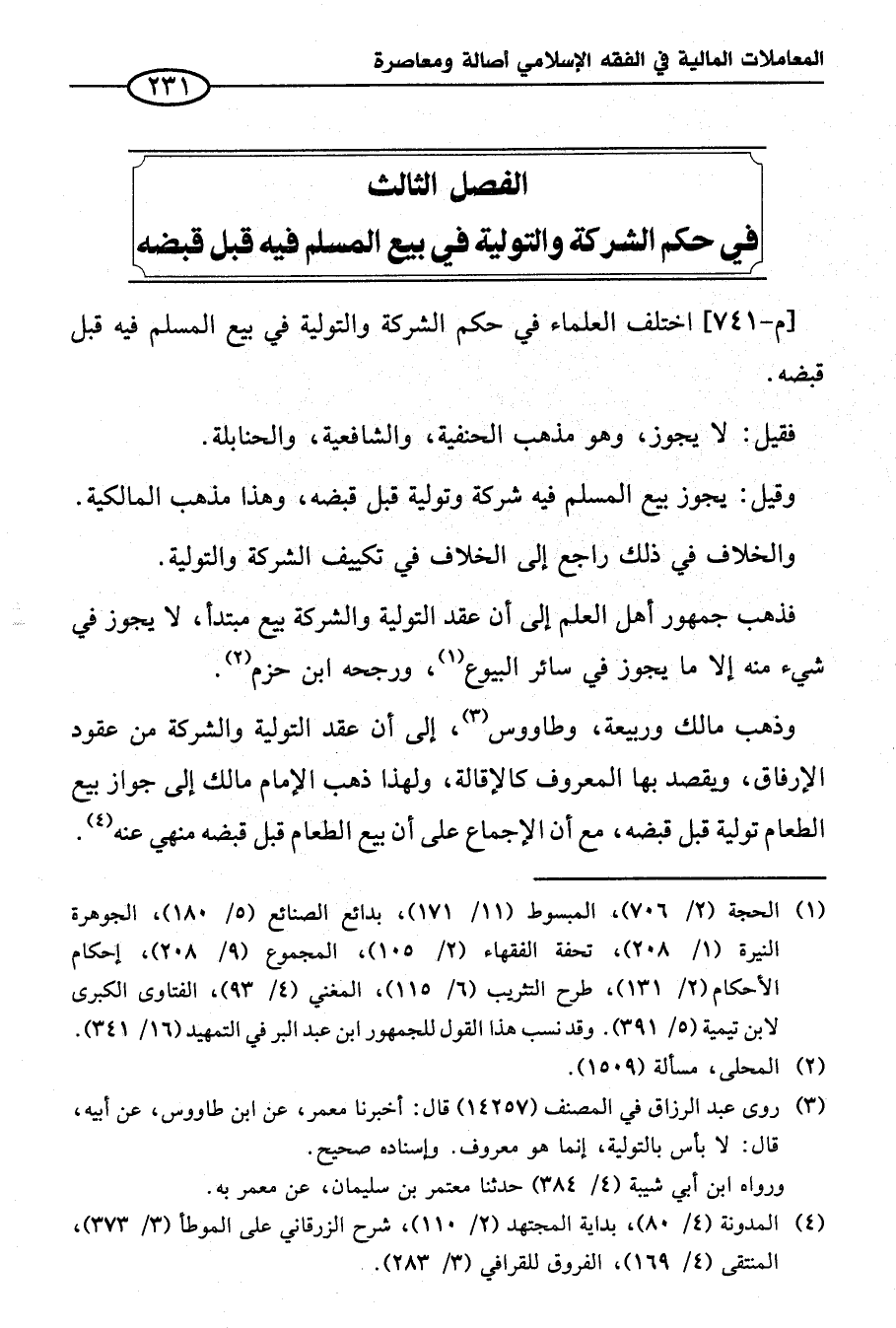 الفصل الثالث في حكم الشركة والتولية في بيع المسلم فيه قبل قبضه