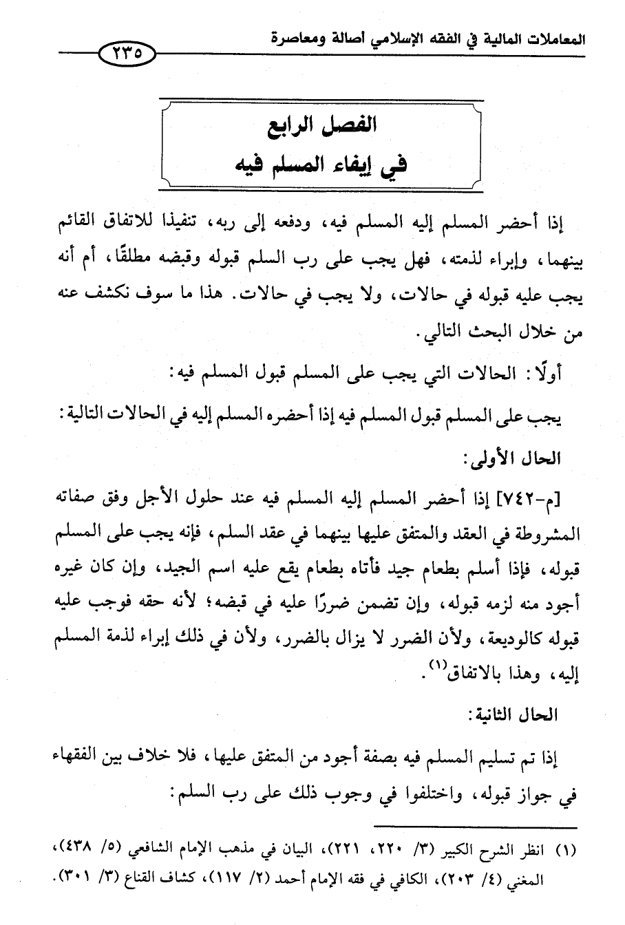 أولاً: الحالات التي يجب على المسلم قبول المسلم فيه: