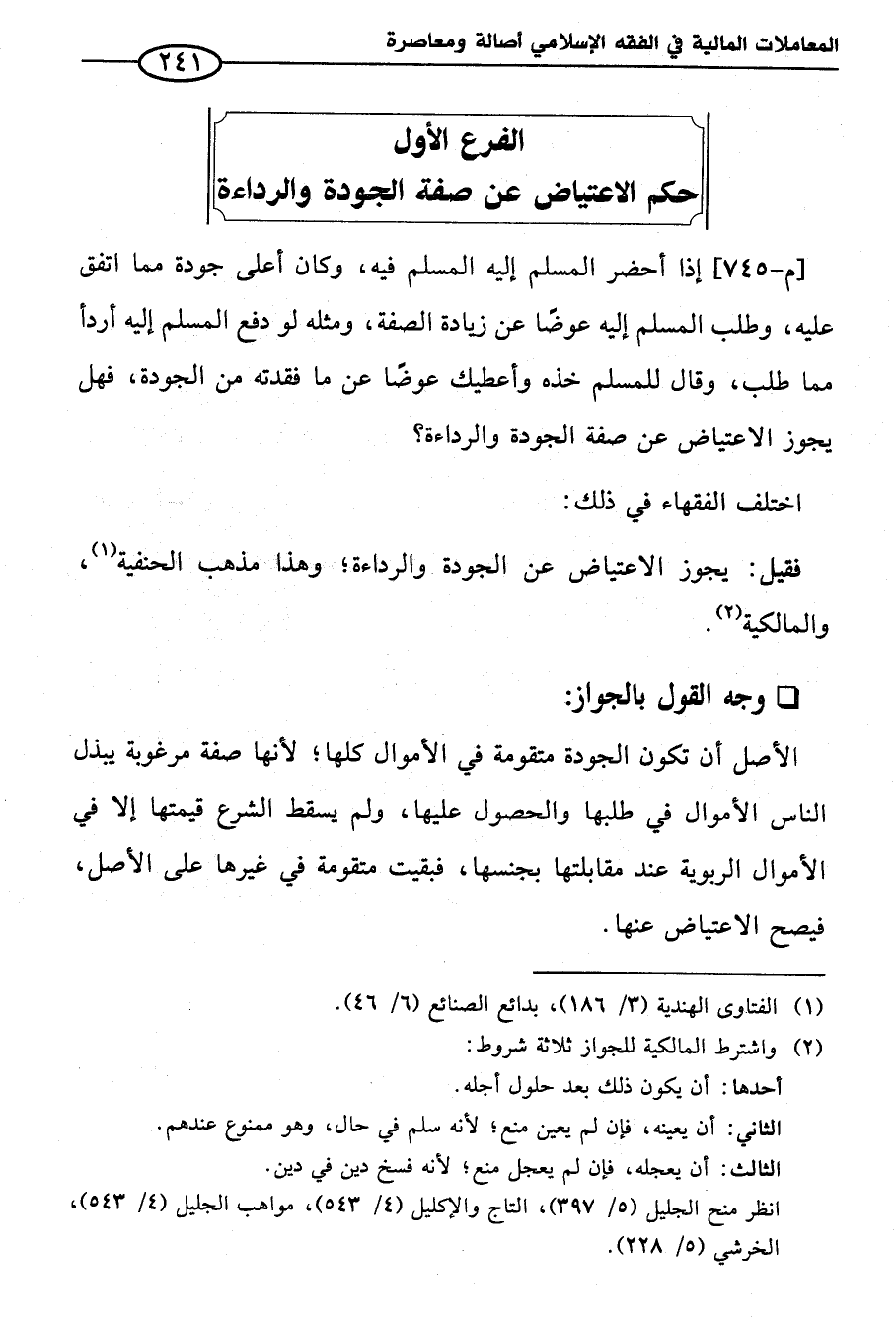 الفرع الأول حكم الاعتياض عن صفة الجودة والرداءة