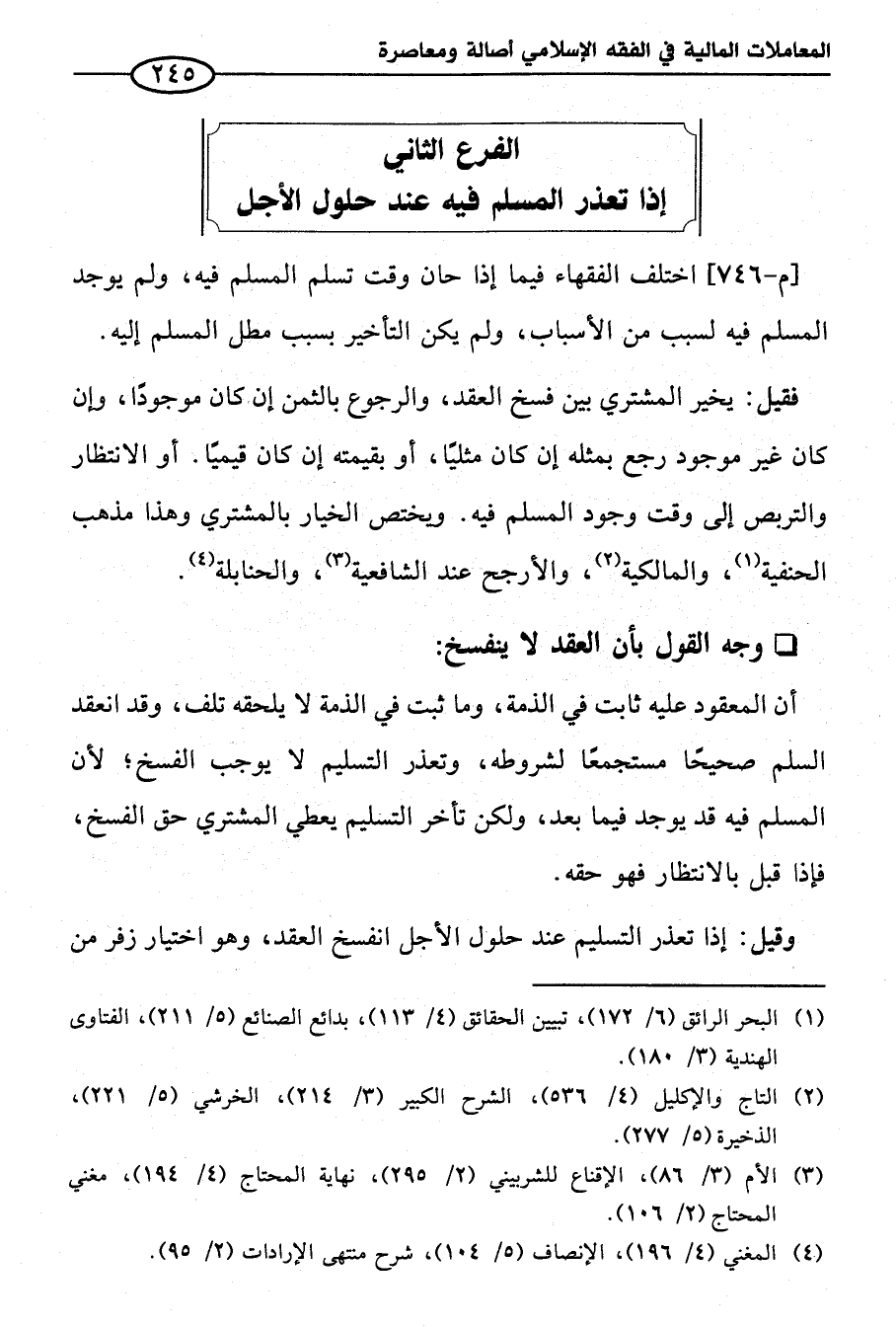 الفرع الثاني إذا تعذر المسلم فيه عند حلول الأجل