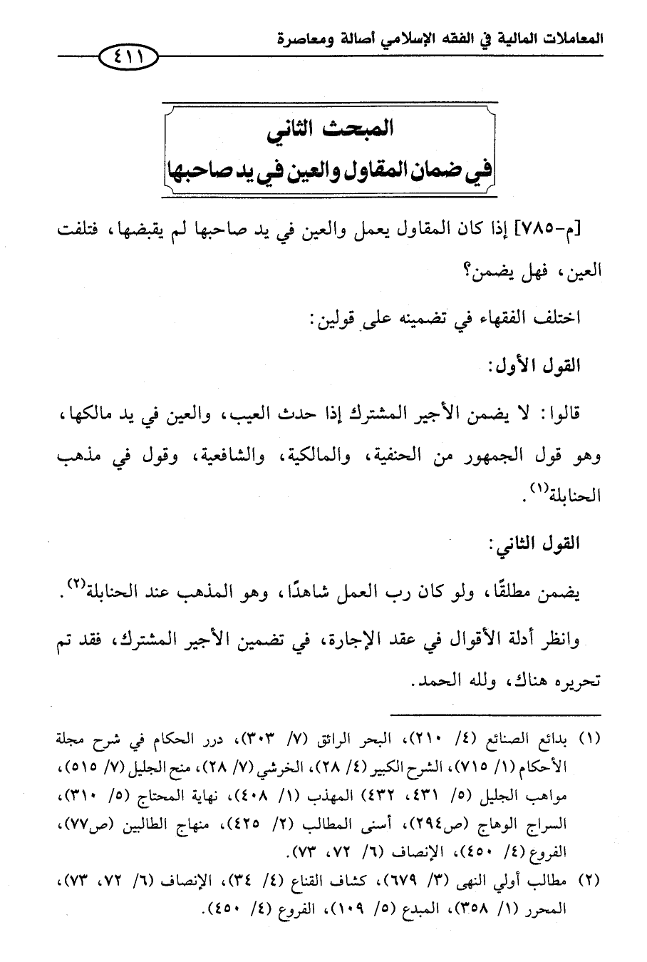 المبحث الثاني في ضمان المقاول والعين في يد صاحبها