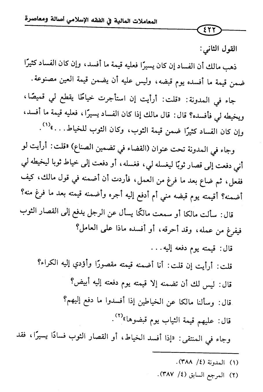 (¬١) المدونة (٤/ ٣٨٨).
