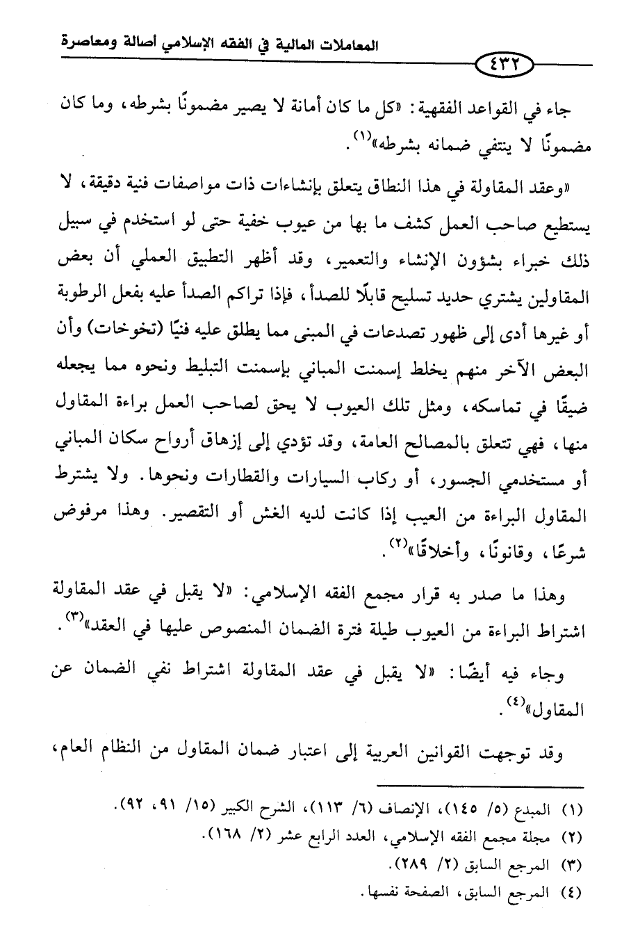 وهذا ما صدر به قرار مجمع الفقه الإِسلامي: "لا يقبل في عقد المقاولة اشتراط البراءة من العيوب طيلة فترة الضمان المنصوص عليها في العقد" (¬٣).