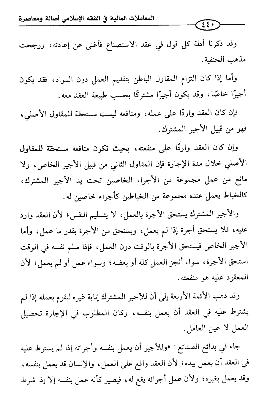 فإن كان العقد واردًا على عمله، ومنافعه ليست مستحقة للمقاول الأصلي، فهو من قبيل الأجير المشترك.