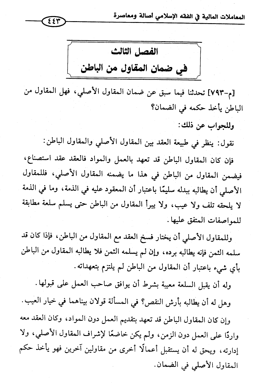 [م - ٧٩٣] تحدثنا فيما سبق عن ضمان المقاول الأصلي، فهل المقاول من الباطن يأخذ حكمه في الضمان؟
