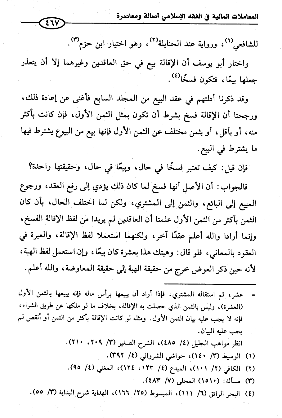 وقد ذكرنا أدلتهم في عقد البيع من المجلد السابع فأغنى عن إعادة ذلك، ورجحنا أن الإقالة فسخ بشرط أن تكون بمثل الثمن الأول، فإن كانت بأكثر منه، أو بأقل، أو بثمن مختلف عن الثمن الأول فإنها بيع من البيوع يشترط فيها ما يشترط في البيع.