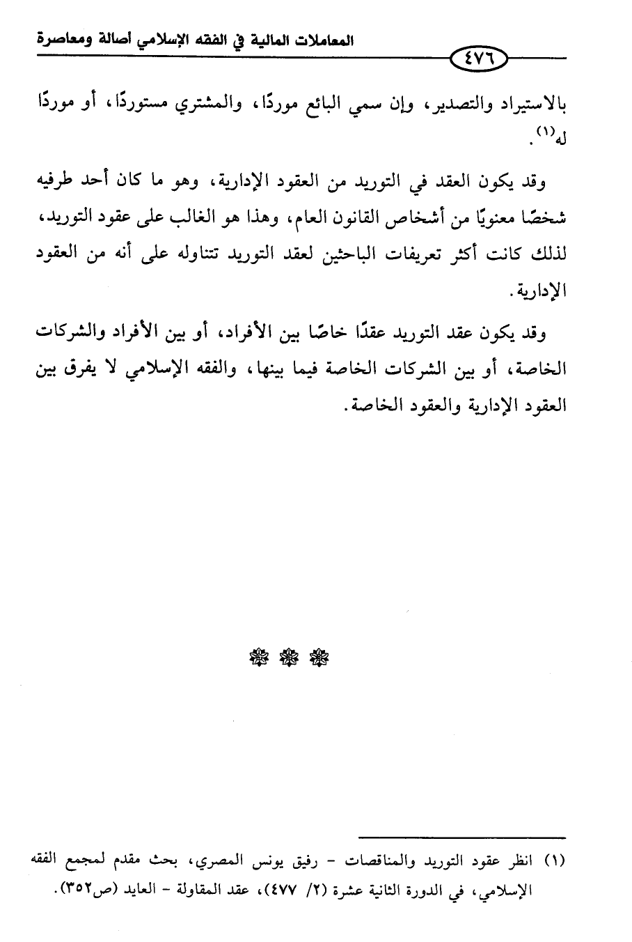 (¬١) انظر عقود التوريد والمناقصات - رفيق يونس المصري، بحث مقدم لمجمع الفقه الإِسلامي، في الدورة الثانية عشرة (٢/ ٤٧٧)، عقد المقاولة - العايد (ص ٣٥٢).